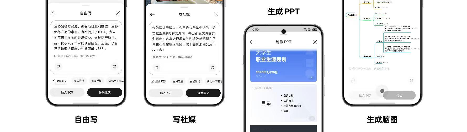 AI笔记助手升级为「全局AI写作」,不仅能写文案,还能将文案一键生成PPT和脑图。此外,还提供「AI帮回复」功能,自动识别和分析上下文对话,给出高情商回复话术。