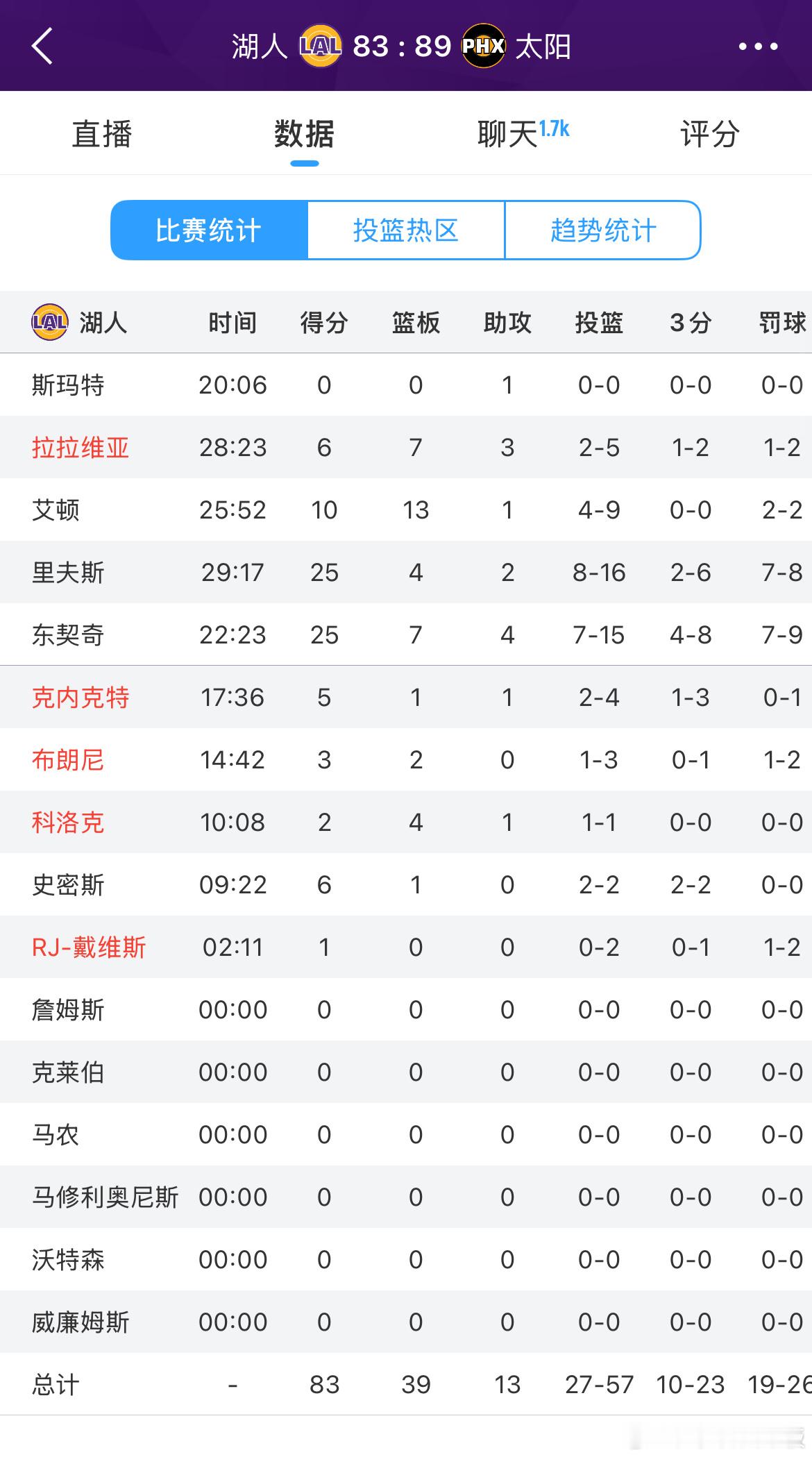 东契奇25分,里夫斯25分,艾顿10分13板湖人vs太阳