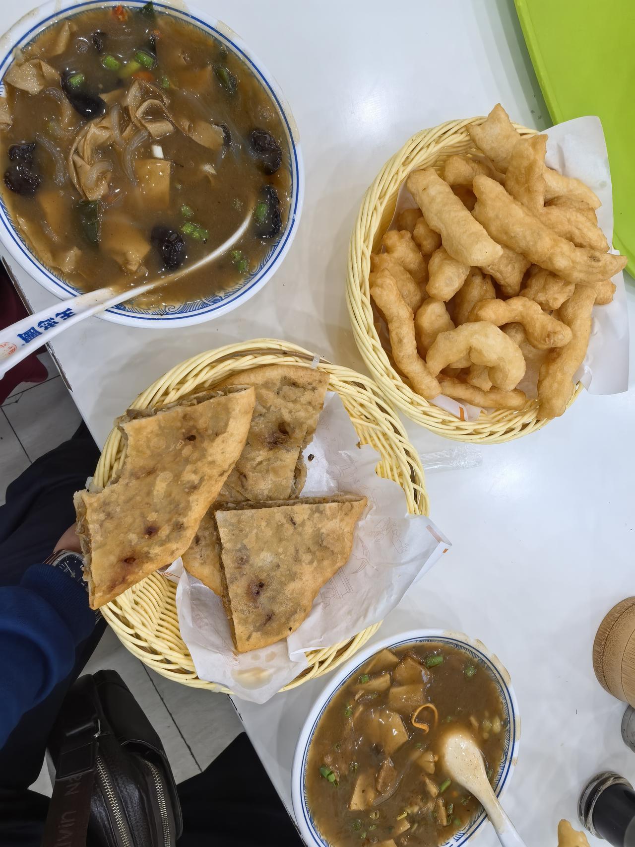 打卡王忠圈胡辣汤馆 今日,在长征路明晶巷旁边发现一家“王忠圈胡辣汤”馆,赶紧进店尝尝味道。 工作时,趟趟路过河南漯河,同事也给送过一次胡辣汤,当时没有仔细品尝,后来才知道这是有名的王忠圈胡辣汤,哎,猪八戒吃人生果,白瞎了同事的心意。今日进店坐下等美味的时候,看了一下店里的宣传图片,才对它有了了解。 不看不知道,原来王忠圈胡辣汤还是河南省漯河市的代表性美食品牌呢,它创立于1994年,历经30余年的发展,已经成为了当地家喻户晓的“老字号”和“中原名吃”是胡辣汤中的领头羊,并逐步拓展至全国市场,处处都有它的加盟店。 满怀期待的点了一份素汤一份肉汤,一份油馍头加一个牛肉饼,消费22元,两人份价格还能承受。再看汤底,介绍说是用牛骨熬制的高汤打底,配以荜拨、桂皮、黑胡椒等十余种中草药调和的辣味,胡辣汤里面加的有面筋、粉条、黄花菜等食材,拿勺子舀了一口,放进嘴里,确实有辣味,但是能承受,口感不腻,有它自己独特的风味。也许是我们去的晚,九点半到店,胡辣汤和牛肉饼都不烫,温温的,就缺了那么一点意思。 店里品种挺多的,喝的有小米粥、玉米粥、豆浆等,还有主食油馍头、水煎包、煎饼、油条、牛肉饼等,让顾客有很多种搭配选择。 店铺干净整洁,值得点赞。也为他们的口号“用心做好汤”折服,看了一下,店里生意不错,正好在商圈里,周围居民也多,很热闹,不缺客源。 最近吃了很多家胡辣汤馆,我个人觉得这是我吃过的第二家好吃的店,我还是喜欢我们襄州区张湾的这家双沟胡辣汤馆,应该还是个人喜好不同吧。 等我的腿伤好了,高低得去一趟河南,尝尝地道的逍遥镇胡辣汤、方中山胡辣汤等,看看是不是网上说的那么香。也请河南的友友,帮我推荐一下,哪个地方的胡辣汤最好吃,让我不虚此行。逍遥豫尚胡辣汤 周口胡辣汤 辣汤馆 杨大姐胡辣汤 宛仲香胡辣汤 王家汤道胡辣汤 杨庙胡辣汤