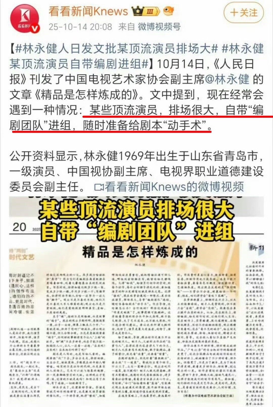 “顶流演员、排场很大、自带编剧团队进组、随时准备给剧本动手术”。