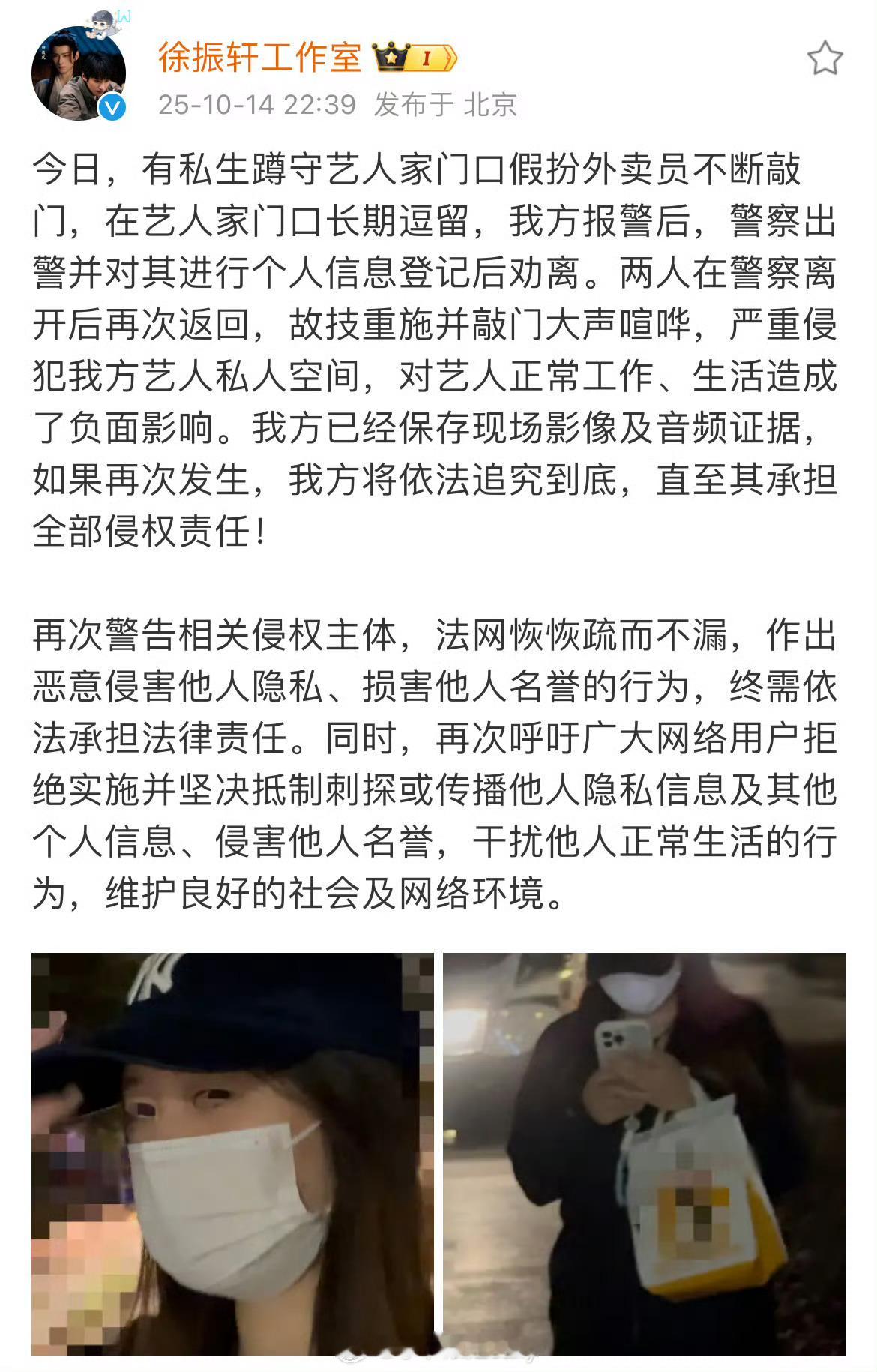 徐振轩工作室挂私生了!假装外卖员敲门警察劝离后又返回[裂开]