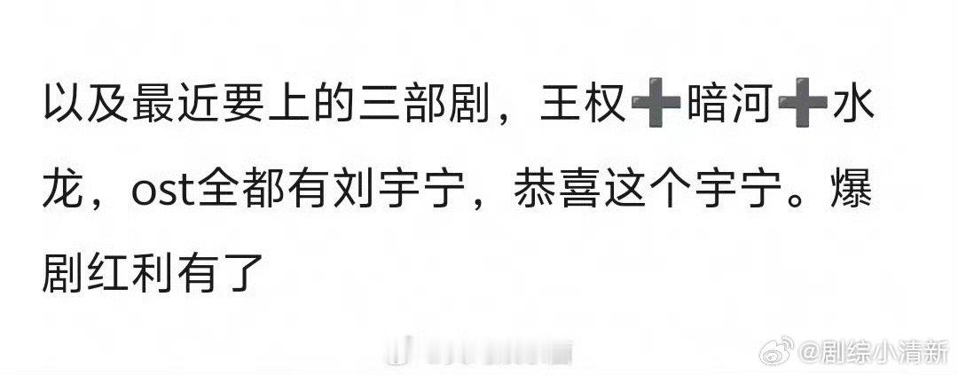 接刘宇宁事业运 刘宇宁事业全面开花!新代言、晚会首发官宣连更,演唱会场场爆满,剧集热度稳了,待播剧ost全包,这开挂运赶紧接,求事业顺风顺水!