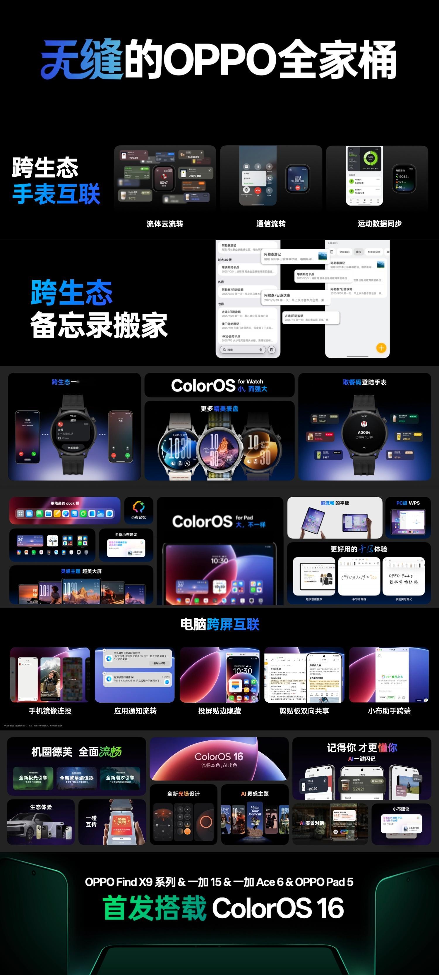 无缝的OPPO全家桶,手机跟手表、平板、电脑的互联更流畅,备忘录能实现跨生态搬家,各种流转。ColorOS16