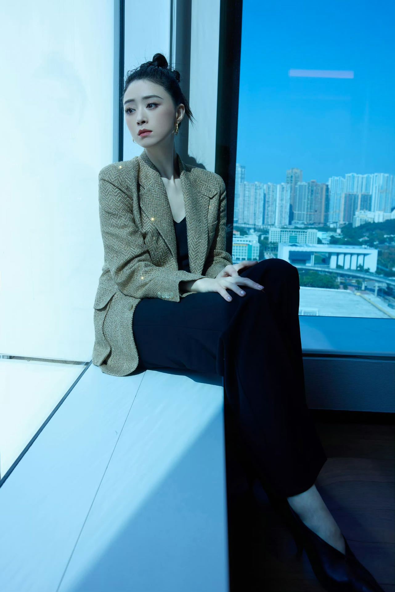 蒋欣成为问界M9银境紫首位车主蒋欣遛狗像在拍时尚大片