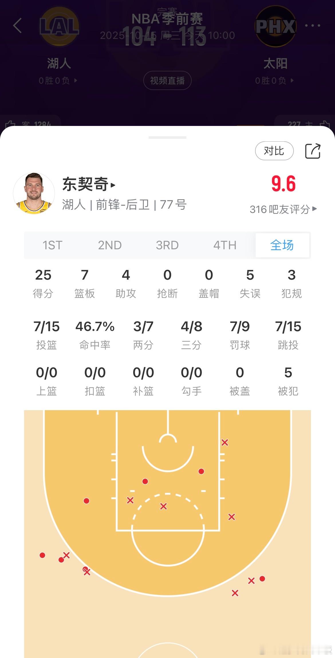 瘦东版本👀本场东契奇15中7,三分8中4,罚球9中7,得到25分7篮板4助攻。