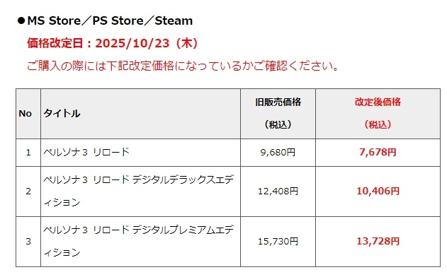 【《女神异闻录3 Reload》多平台价格永降!调整后价格公布】