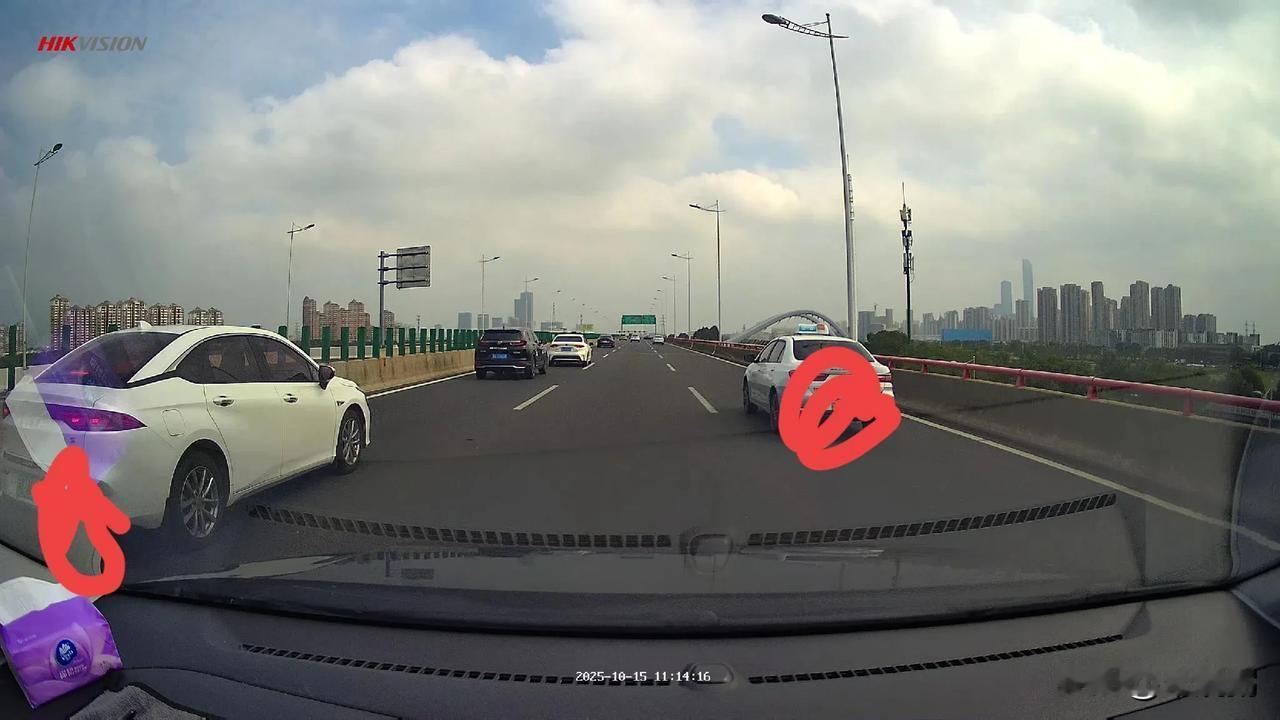 10月15日苏州高架快速路园区段,还有人敢别车原因不明?我驶过他们后,从后视镜看到白车跨三车道别黑色车。