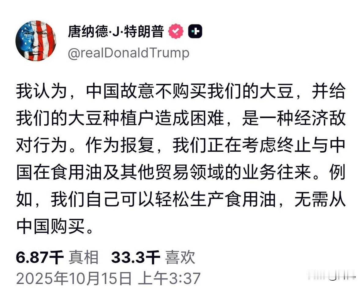 彻底急了!面对美国大豆种植户卖不出去大豆的压力,特朗普在社交平台上直接点名中国,