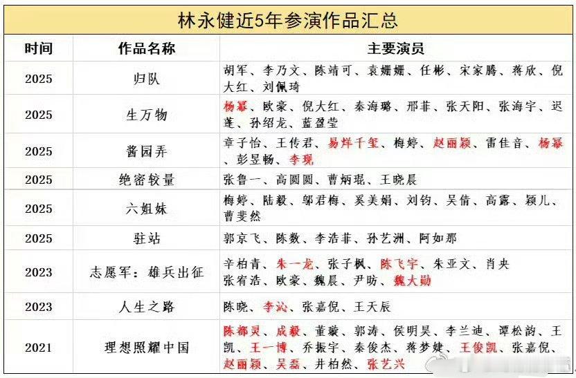 林永健人日发文批某顶流演员排场大万能的网友把这几年和流量合作的戏都扒出来了,你们