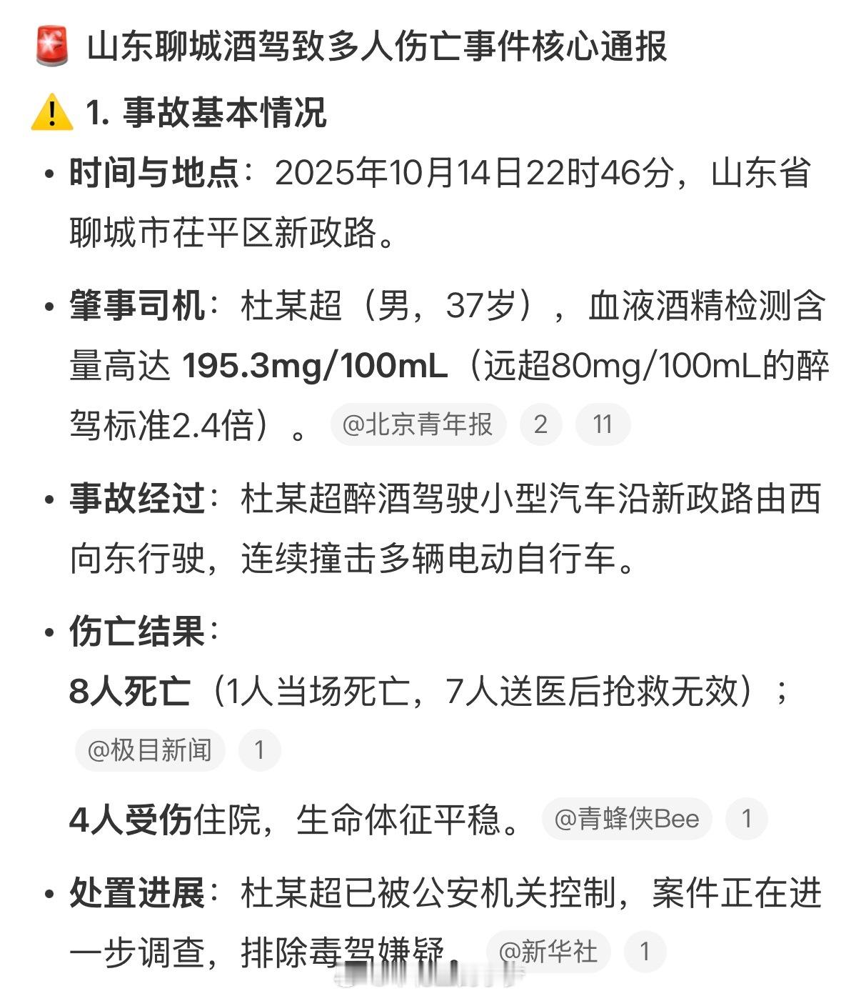 山东聊城一起酒驾致8人死亡 8️⃣死4️⃣伤!第一次听到去世的比受伤的人数还多,太悲痛了……