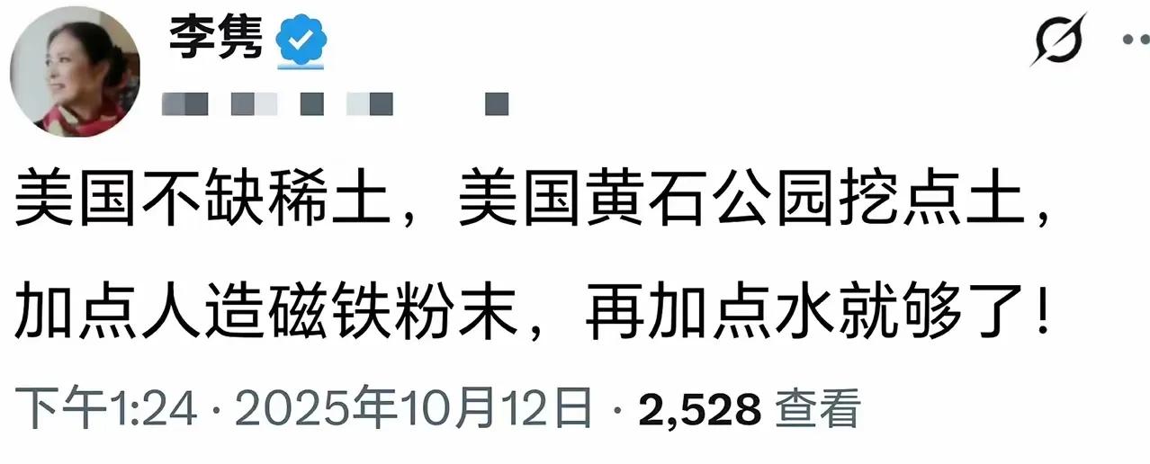 稀土分三种:稀有金属,轻稀土,重稀土!看了这个就真正明白东大管制稀土后大漂亮急得跳脚,也只能跳脚![捂脸]还真是毫无办法! 第一丶第二个就算老美不计成本,下重金搞定,以维持军工优势,那么产品也是贵上天价!而且会被东大在管制与倾销之间反复折磨! 第三个它们是根本毫无办法,连矿都没有,更别说没有提炼技术了![捂脸]例如牛翻天的英伟达,制作芯片必须的镝金融,几乎全部(99%+)来自中国! 老特要不找找磁吸大妈,把她伺候好了,让她给做点稀土?[捂脸]