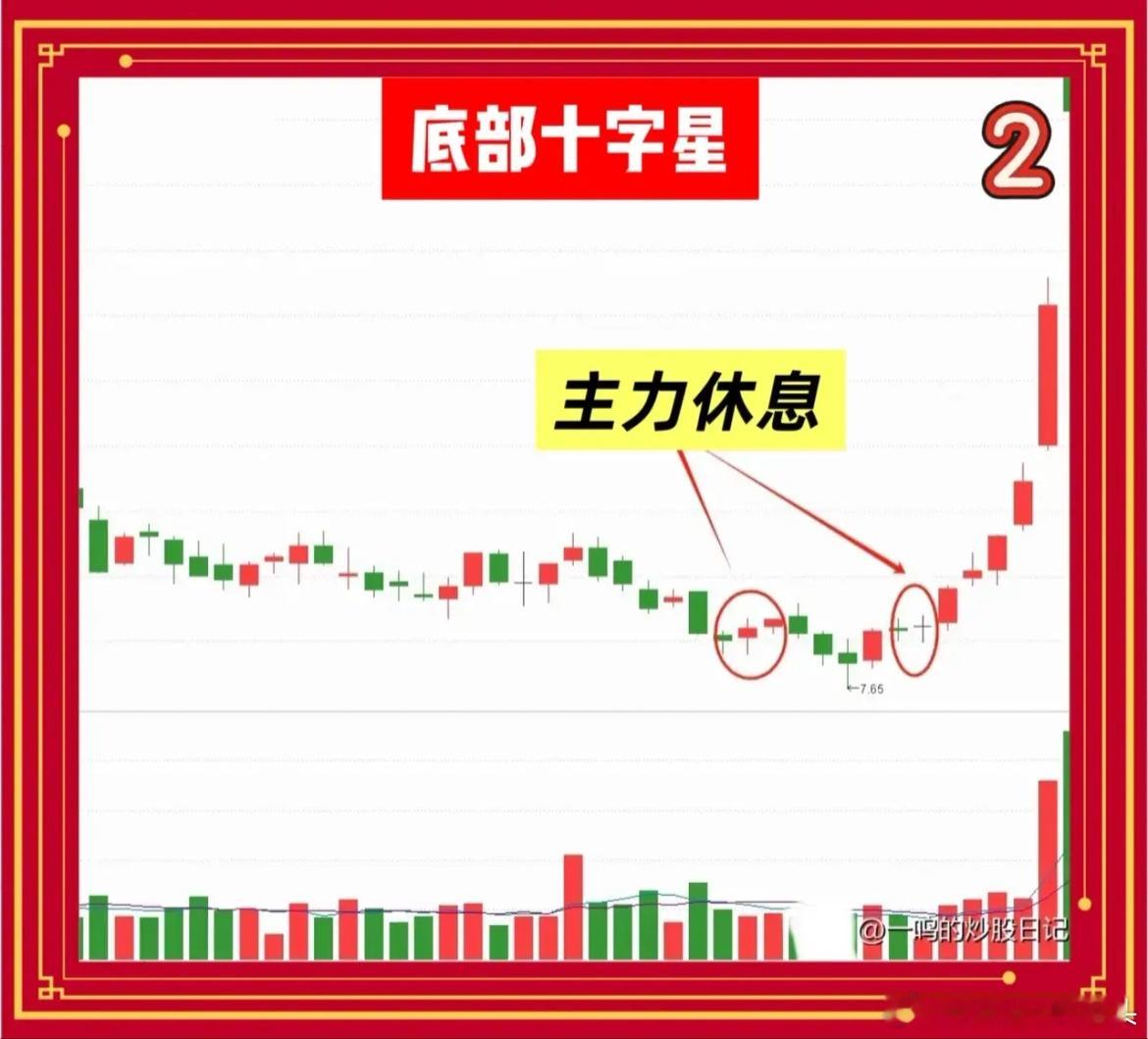 涨升初中期出现普通十字星,上下影线均衡,属清洗浮筹行为,次日放量重拾升势可顺势加仓。