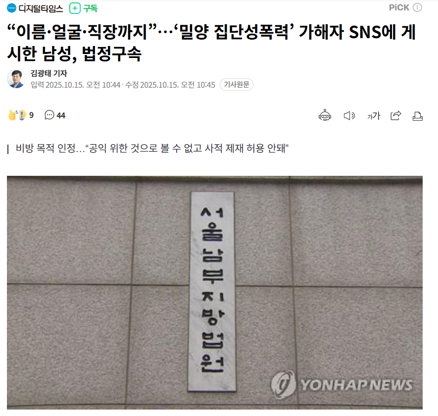 审判部表示:"被告以让相关人员无法进行社会生活为目的,为进行私人制裁而发布视频,这符合事实","这是现行法律所不允许的,不能视为是为了公共利益"。审判部还指出:"如果私人制裁在社会上扩散,可能会损害司法体系,罪责不轻","受害者中包括未确认参与密阳性暴行事件的人员,但被告仍公开了其信息。"