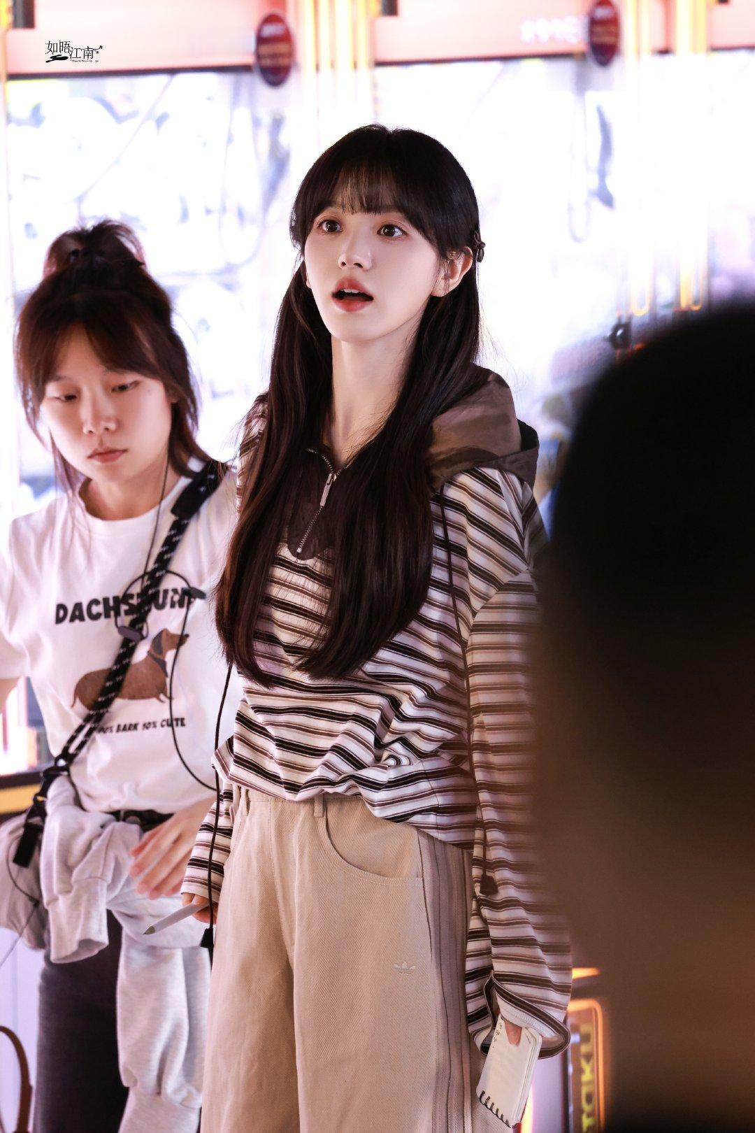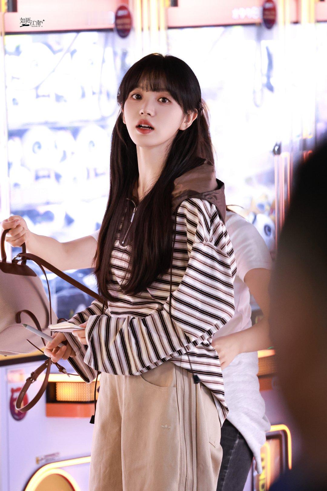 田曦薇条纹卫衣造型 田曦薇游戏厅路透