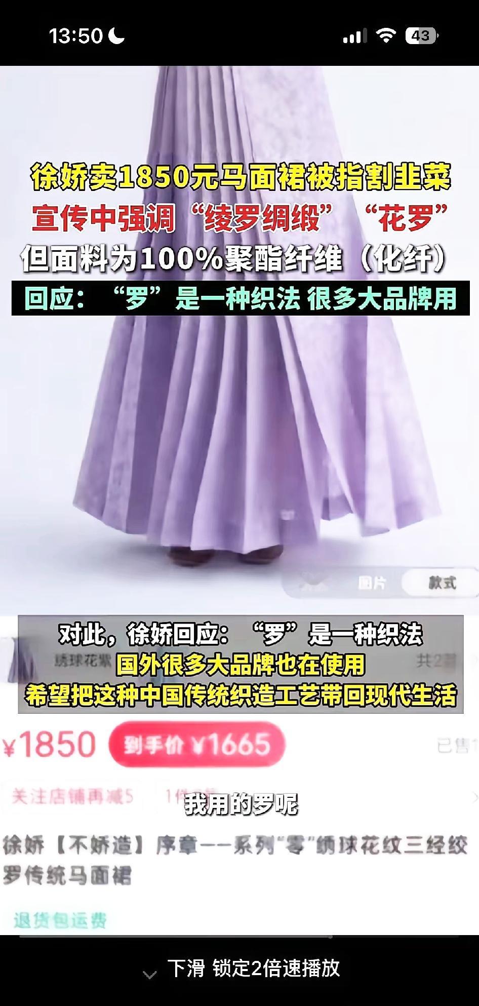现在的直播带货真是越来越没底线了!某三线女演员直播卖货,居然把聚酯纤维说成“绫罗绸缎”里的“罗”,还敢标价小2000,这哪是割韭菜,分明是把网友当傻子耍! 稍微有点常识的人都知道,“罗”是古代用“绞经”工艺织成的高档丝织品,是实打实的丝绸,跟塑料做的聚酯纤维八竿子打不着。更别说成本了,聚酯纤维才5 - 7千一吨,真丝却要20 - 40万一吨,这差价可不是一点半点,拿便宜货冒充高档货,也太会忽悠了。 作为艺人,本该爱惜羽毛,先学做人再做事。为了赚快钱,连基本的常识都不顾,连资料都懒得查,就敢在镜头前胡吹,这样的直播谁还敢信? 说到底,网友买东西是信任你,不是让你当冤大头宰。要是都像这样毫无底线,迟早会被市场淘汰。你们在直播间还遇到过哪些离谱的“忽悠”?评论区说说,避避坑!