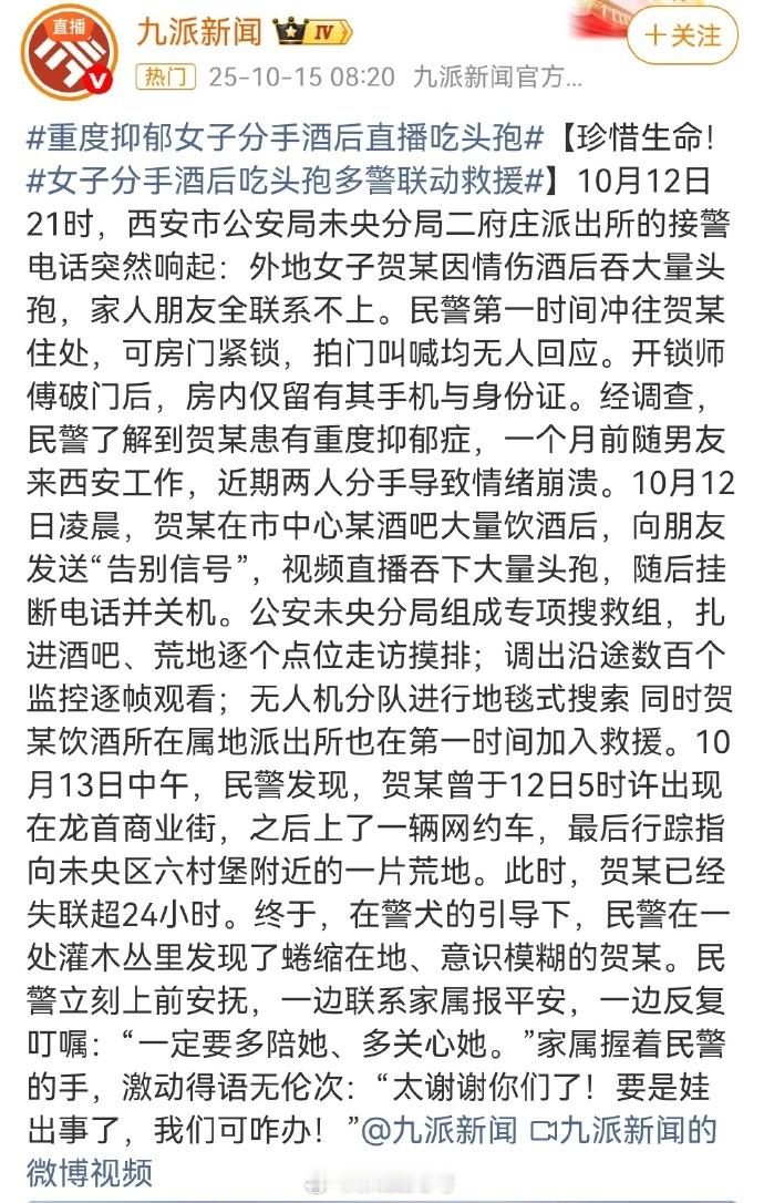 重度抑郁女子分手酒后直播吃头孢分手问题不大,可以再找。但心态崩了,基本是没救了。