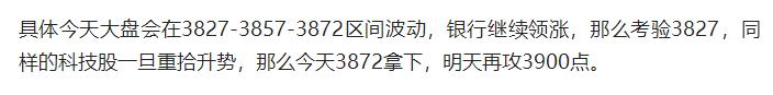 科技股重拾升势,大盘直接3900! 看看盘前怎么说的,科技股领涨就有3900希望。 千万不要想着什么高低切换,这个市场一切换,全市场死翘翘! 昨天银行大涨2.36%的危害历历在目。