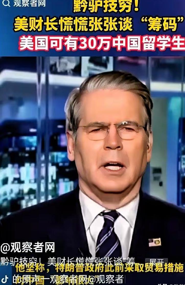 就在刚刚 美国财政部长近几日的一番话,说美国对东方大国的制裁很有力度,这个大国的留学生被美国视为筹码,数量在30-40万之间。网友们的反应非常激烈,说把学生当人质,这个说法也把人惊呆了。也有理性的声音,说留学生每年给美国带来超过140亿美元的消费,他们并不觉得自己是筹码,而是觉得自己是受害者。 当然了,也有不同的声音,说如果美国真的把留学生扣留在美国,反而会让更多的人放弃留学美国的计划,让更多的人选择留在国内。 不管怎么说,留住人才还是最重要的。