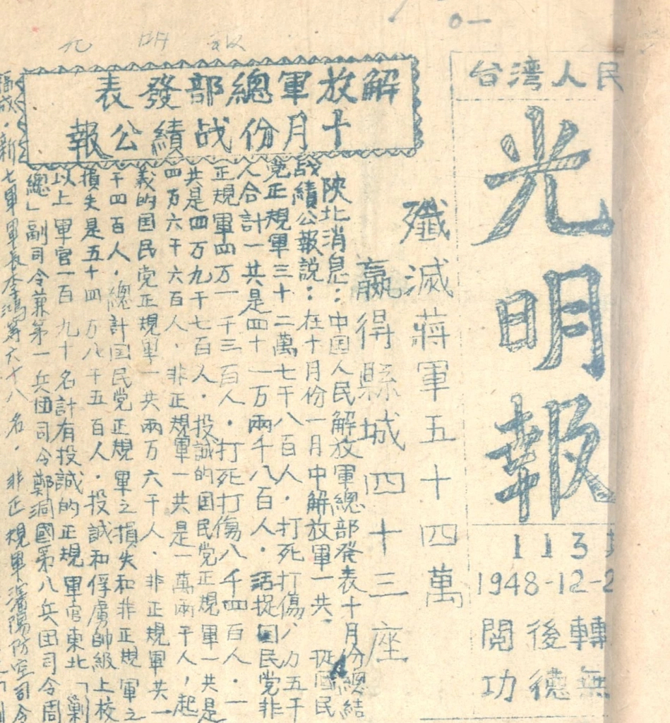 中共台湾地下党组织被军统头目谷正文破获,导致全军覆没,缘起于1949年的光明报事件。