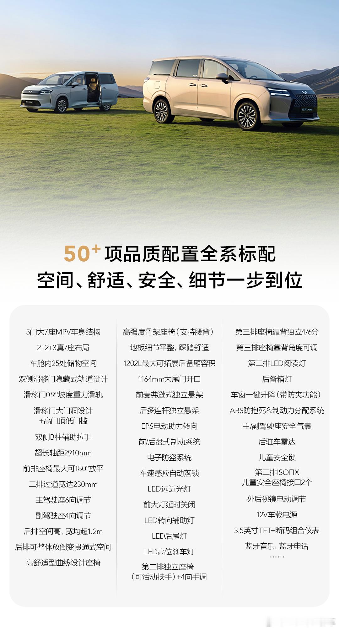 实用配置不缩水:星光 730 标配电动侧滑门(方便老人孩子上下车)、神炼电池(200 万销量验证安全);阿尔法低配虽有双侧电动侧滑门,但同价位星光还能享三电终身质保,性价比差距显著。