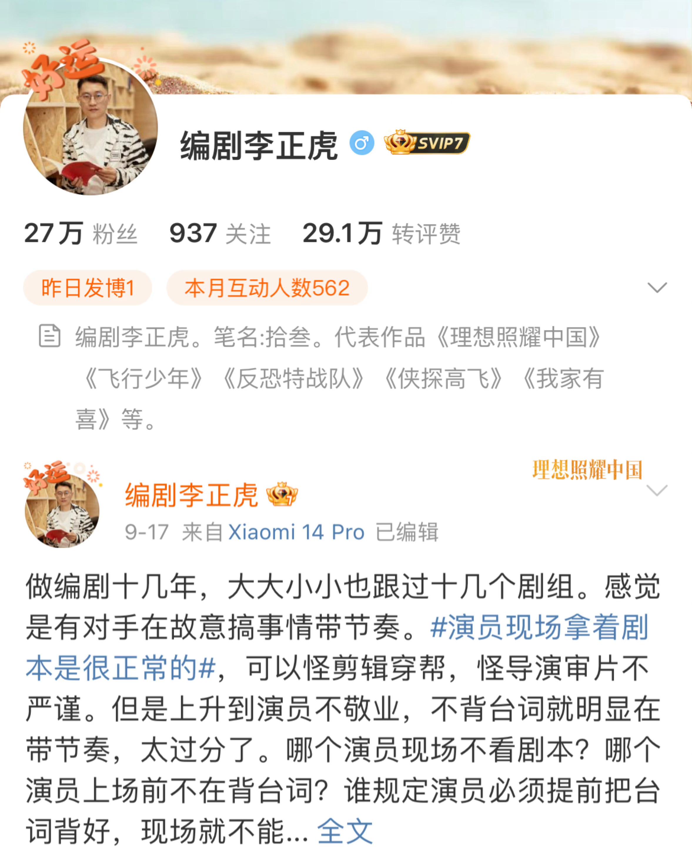 理想照耀中国编剧李正虎看到成毅赴山海被嘿,实在忍不住正义发声。