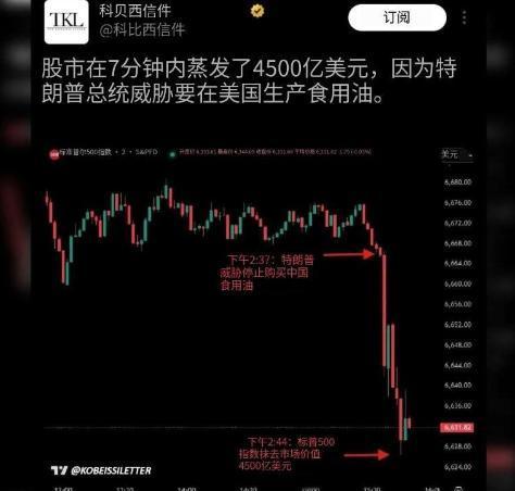 特朗普发表声明后,美国股市在短短7分钟内蒸发4500亿美元。 他在文里说:“