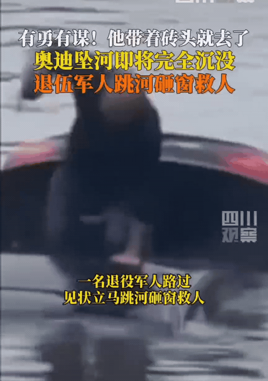 江苏泰州,奥迪车冲入河中,司机被困,砸窗救人的男子为什么这么勇敢,原来他的身份不简单。他轻飘飘地说:“我们都当过兵怕什么。” 奥迪车因为避让电动车,冲进河里。奥迪车进水,司机被困车中,并且车里算是水。危急时刻,一黑衣男子手拿石头跳入河中。开始石头掉了,他赶紧扎捞起来,爬上车顶,用石头砸破了天窗。把司机从水里捞了出来。 司机泡在水里,如果晚几分钟,肯定会有生命危险。 这位救人的男子叫狄双成,是一名退伍军人。他虽然水性也不好,但是看到有人落水,第一时间下水救人。救完人,他才发现自己手臂上都是血。 事后采访中,他轻飘飘地说了一句:“我们当过兵怕什么。” 网友们都觉得救援的太及时了,要不司机肯定是会有生命危险。 退伍军人也是一个乐于助人的群体,在救援现场经常能够看到他们的身影。他们经过军营的磨练,身体素质好并且都很有胆量。 公共场所经常让军人优先,这也是有道理的。不知道退伍军人能不能优先呢?