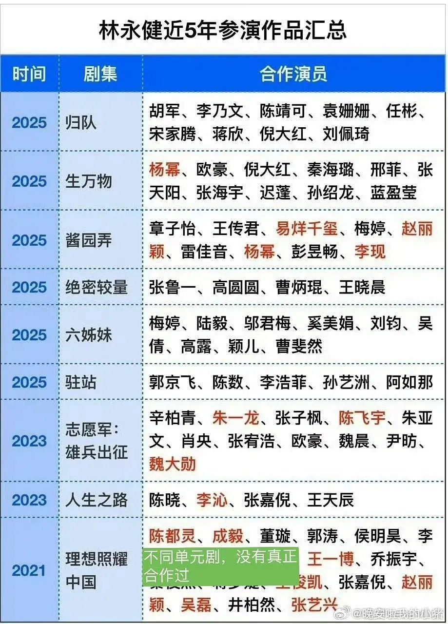 成毅粉丝澄清帖,说没有和林永健合作过,合作过的导演都对他盛赞有加。