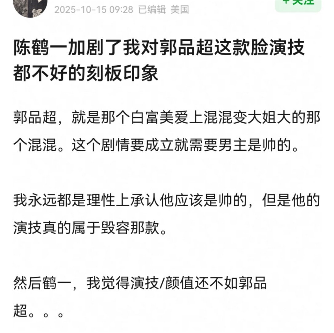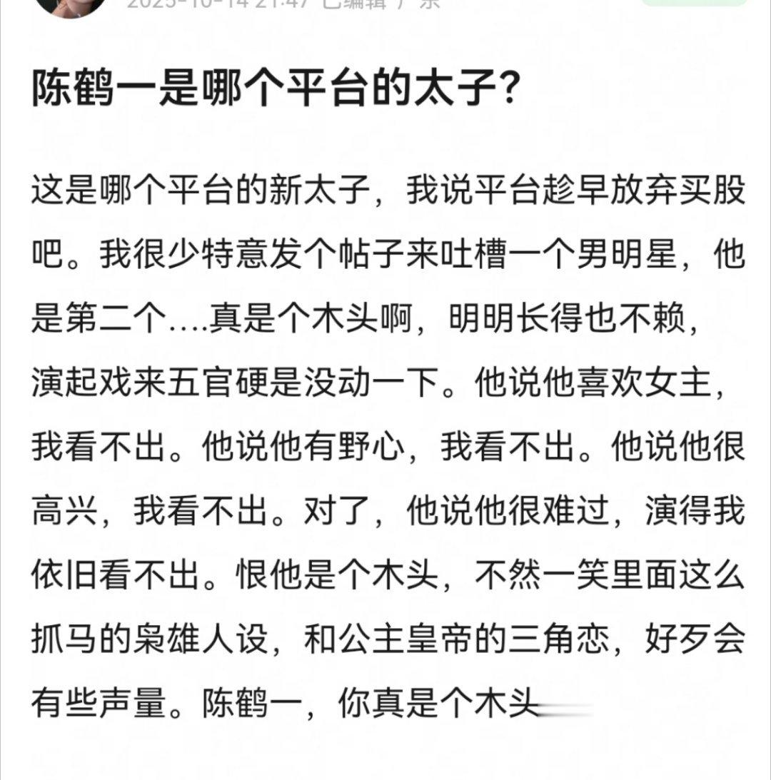 陈鹤一,一款吸粉赶不上演技被喷速度的待爆咖