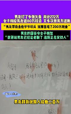 河南省巩义市一女子交往小12岁男友,给对方272万后发现其是悬赏老赖! 巩义的张女士至今想不通,自己名下两套房产、一辆蔚来汽车,开着酒水店还做天然气生意的小富婆,怎么就沦落到靠借钱吃饭的地步。 这一切的转折点,始于2023年认识的那位比她小12岁的男友。 他嘴甜,懂得关心人,离异后好久没尝过被疼爱的滋味。 张女士回忆起最初的相处,满是懊悔。 交往没多久,男友说有个稳赚不赔的生意:投十几万,一天能赚两三千。 半信半疑的她投了10多万,没想到两天就收到五六万利润。 被高额回报冲昏头的张女士,在男友投越多赚越多的鼓动下,找朋友借钱追加投资,4个月里砸进去近80万。 可没等再拿收益,男友就传来坏消息:我把租的车抵押了,人家告我诈骗,我要是进去了,你的80万就没了! 为了拿回本金,张女士卖掉房子车子,又帮男友还了四五十万欠款——这些钱有借的、有贷的。 让她彻底放下防备的,是男友那句爷爷坟里埋着200万现金,以后全给你。 她选择了相信。 直到2025年10月,投资的80万没影,自己又搭进去200多万,拿着男友写的272万欠条却找不到人时,张女士才报警。 更让她崩溃的是,民警告知:男友早是巩义法院公开悬赏的被执行人。 其实这种骗人的手法都是相似的。 光明网2025年8月28日也报道了类似的事例。 29岁的林宇凭着俊朗外形和甜言蜜语,同时和两位大十几岁的姐姐谈恋爱,两年骗走1000多万。 47岁的李馨在夜店认识林宇时,只当是遇到了贴心的小男友,却不知自己在对方手机里备注的是老金主。 2024年5月到11月,林宇以银行卡冻结取保候审缺钱为由,让李馨转了上百笔钱,共计890多万元。 而他还给李馨的360万还款,竟是从另一位受害者吴敏那里骗来的。 45岁的吴敏比李馨早两年认识林宇,被对方以账户解冻家人手术等理由骗走950万,最终负债累累。 更荒诞的是,李馨报案后仍叫他老公,吴敏被骗到负债还主动写谅解书,足见情感操控的杀伤力。 骗子深谙甜言蜜语比物质更能打动缺爱的人,先用关心瓦解防备,再用虚假承诺套牢资金。 最高检数据显示,2024年1月至2025年3月,全国检察机关办理婚介行业犯罪案件达1546人,这类 情感诱导+金钱诈骗占比超六成。 从张女士的272万欠条,到林宇案的1000多万损失,这些案例撕开了情感诈骗的残酷真相:所谓的 姐弟恋完美爱情,可能只是骗子精心设计的陷阱。 最高检明确指出,婚恋网站已成为诈骗引流重灾区,不法分子会根据性别定制骗局剧本,中年离异 女性是重点目标。 张女士的遭遇不是个例,那些被撕碎的积蓄和信任,都在提醒我们:爱情里可以付出真心,但不能交出全部身家。 你身边有没有遇到过类似的情感骗局?如果伴侣让你贷款帮他救急,你会怎么做?欢迎在评论区分享你的看法和建议。
