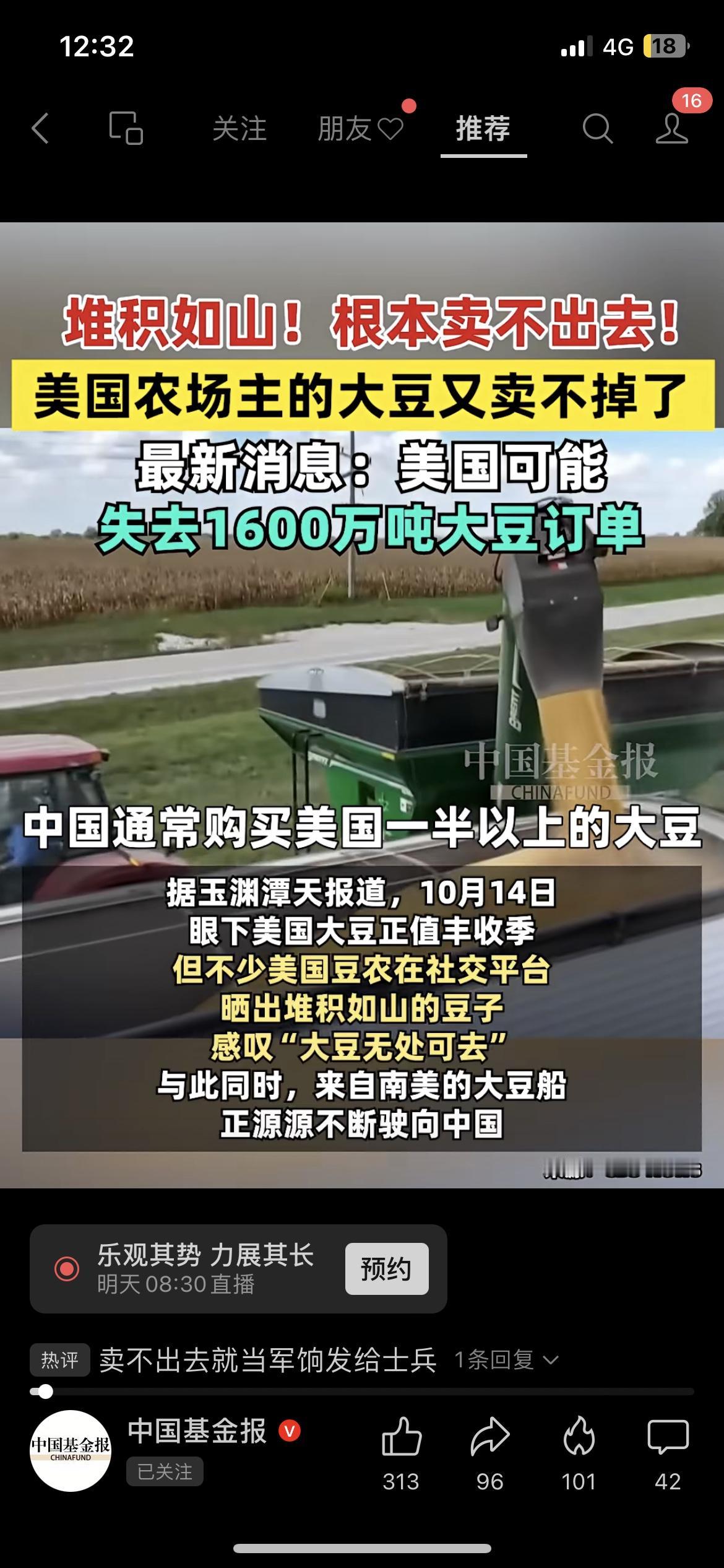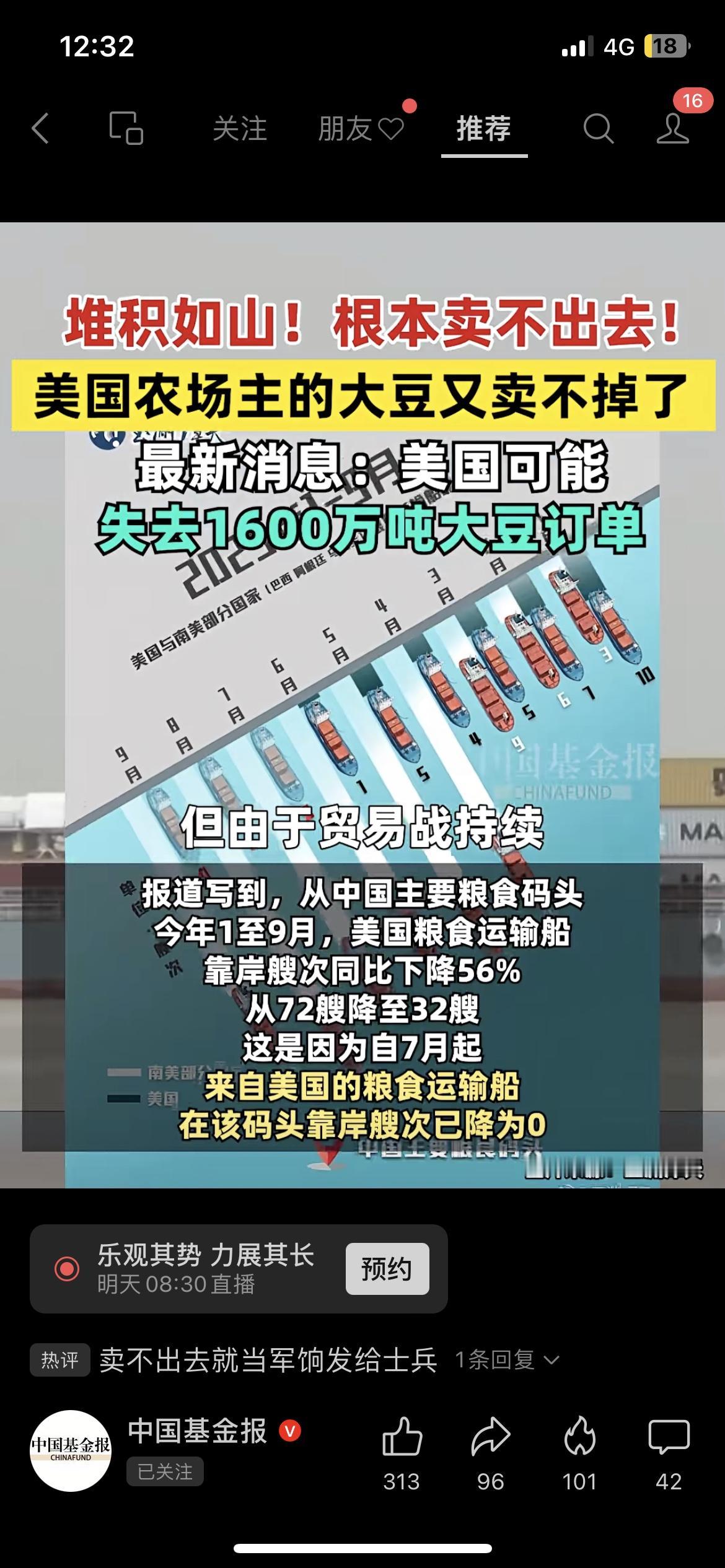 【重磅!美国大豆丰收季遇“滞销噩梦”】眼下美国大豆正迎来丰收,但农场主们却笑不出来——社交平台上“堆积如山”的大豆照片刷屏,全在感叹“根本卖不出去”! 更扎心的是,美国可能要失去1400 - 1600万吨大豆订单!要知道,中国曾是美国大豆的“头号买家”,通常买下其一半以上的产量。但今年1 - 9月,中国主要粮食码头的美国粮食运输船靠岸艘次暴跌56%,7月后更是“零靠岸”! 与此同时,南美大豆船正源源不断驶向中国……市场调研公司直言:“失去中国,美国就等于失去半个大豆市场!” 这场贸易变局下,美国农场主的大豆还能“找着北”吗?你怎么看?美国大豆出口 中美大豆