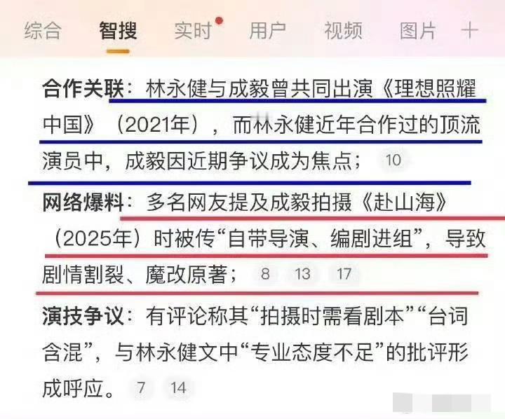 林永健人日发文批某顶流演员排场大。 为林老师点赞👍。 感觉现在的顶流演员排场越来越大,水平也越来越低。哪有什么扎根和俯下身子,追求的都是表面功夫,更没什么时间看剧本背台词。 有人质疑林永健的身份,殊不知他是国家一级演员、中国视协副主席,以及电视界职业道德建设委员会副主任。 他说的这些话有分量也符合他身份,关键说的也是事实。 虽然没有明指是谁的,智搜上竟然说是成毅。