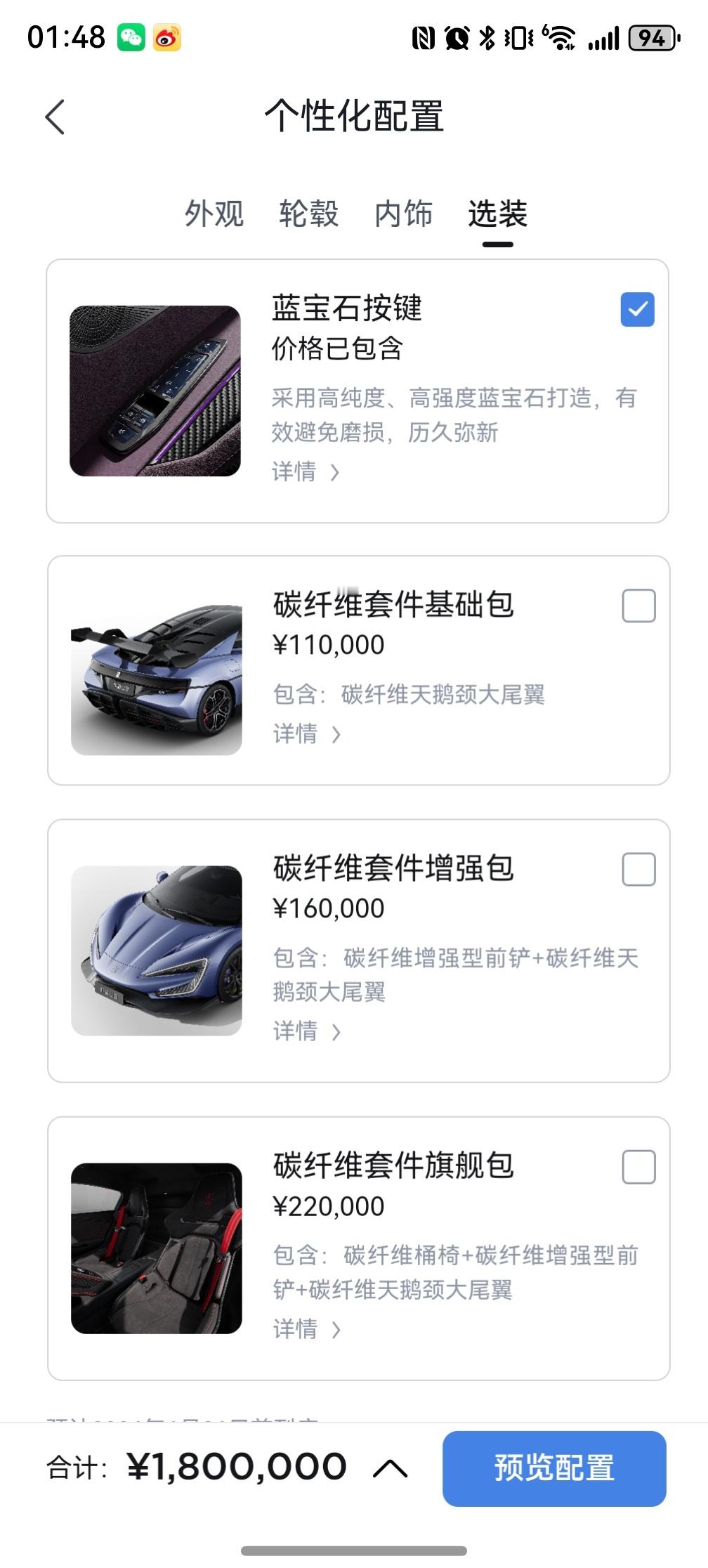 仰望U9小幅度降价,此前定价是169万,加豪车税就182万了,原装蓝宝石按键再加