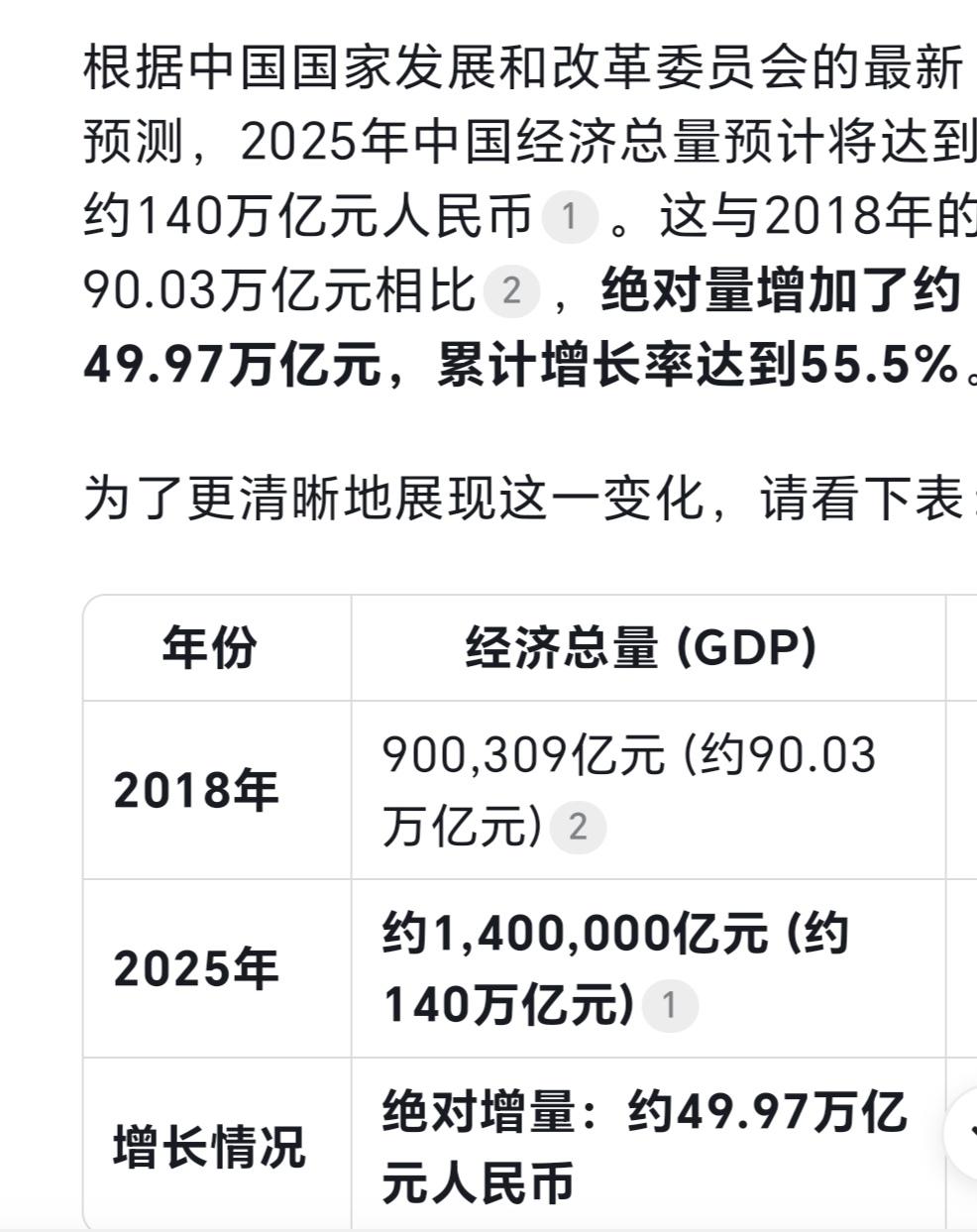 为何同是在国际大环境极不确定的情况下,2025年与2018年A股的表现大不一样呢? 资本市场的表现通常被认为是信心的体现,其实信心的背后,是咱们各方面实力的显著提升,是咱们的发展大势是确定的。 无论是经济总量、科技水平、军事实力军工科技、还是产业发展、消费能力消费水平,2025年都比2018年上了一个大台阶,而且,这七年来咱们还积累了相当多的应对重大风险和挑战的宝贵经验。