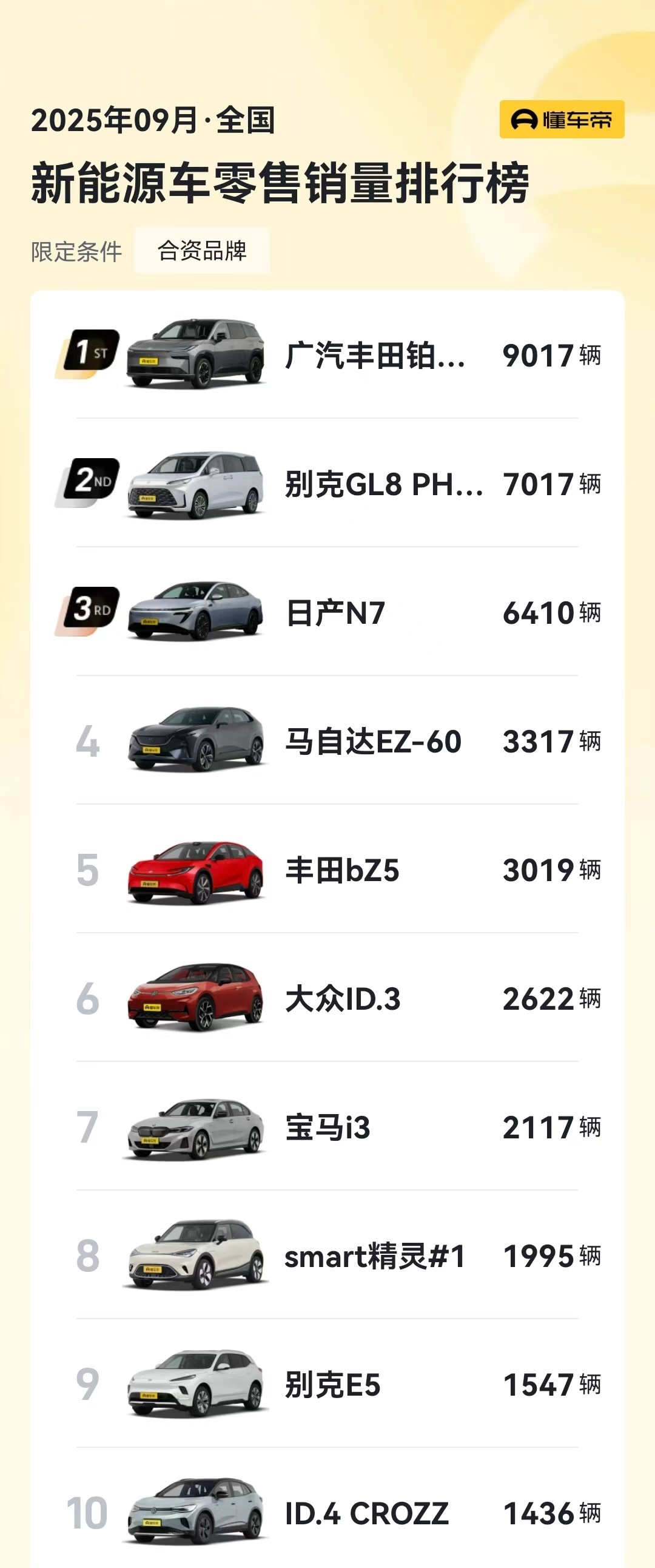 最后,懂车帝9月合资新能源车销量榜直接拿第一,硬实力这块没话说!