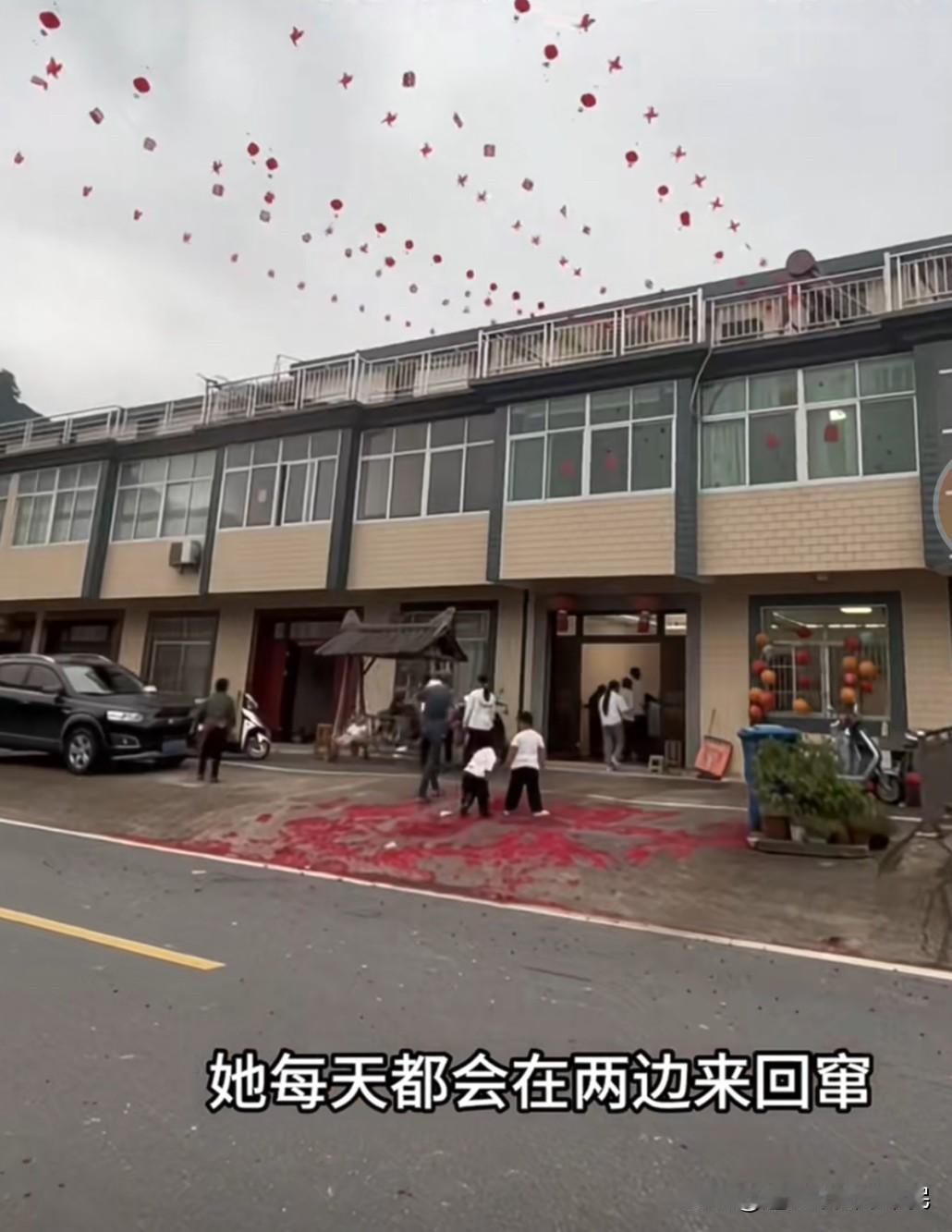 嫁的近,可真幸福呀 男女双方在七八岁的时候就认识 恋爱五年,然后今年的十月一结婚了 男方家和女方家隔着一条马路 也就是说相距40米 接亲的时候队伍直接早上直接去女方家 然后新郎把新娘直接抱回家 结婚以后,新娘在婆家窗边就能跟自己说妈妈聊天,平时更是来回两边窜 上一顿在婆家吃,下一顿就在娘家吃 过年的时候就更好啦 也不用纠结去哪家过年