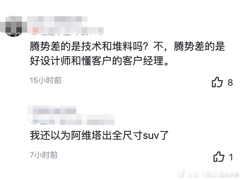 目前,新车处于预售阶段,预售价格分别为31.98万元和34.98万元,对比同级别的理想L8、领克900、问界M8来说,腾势N8L是有价格优势的,难怪就连评论区的网友都说“腾势差的是技术和堆料吗?不,腾势差的是好设计师和懂客户的客户经理”。