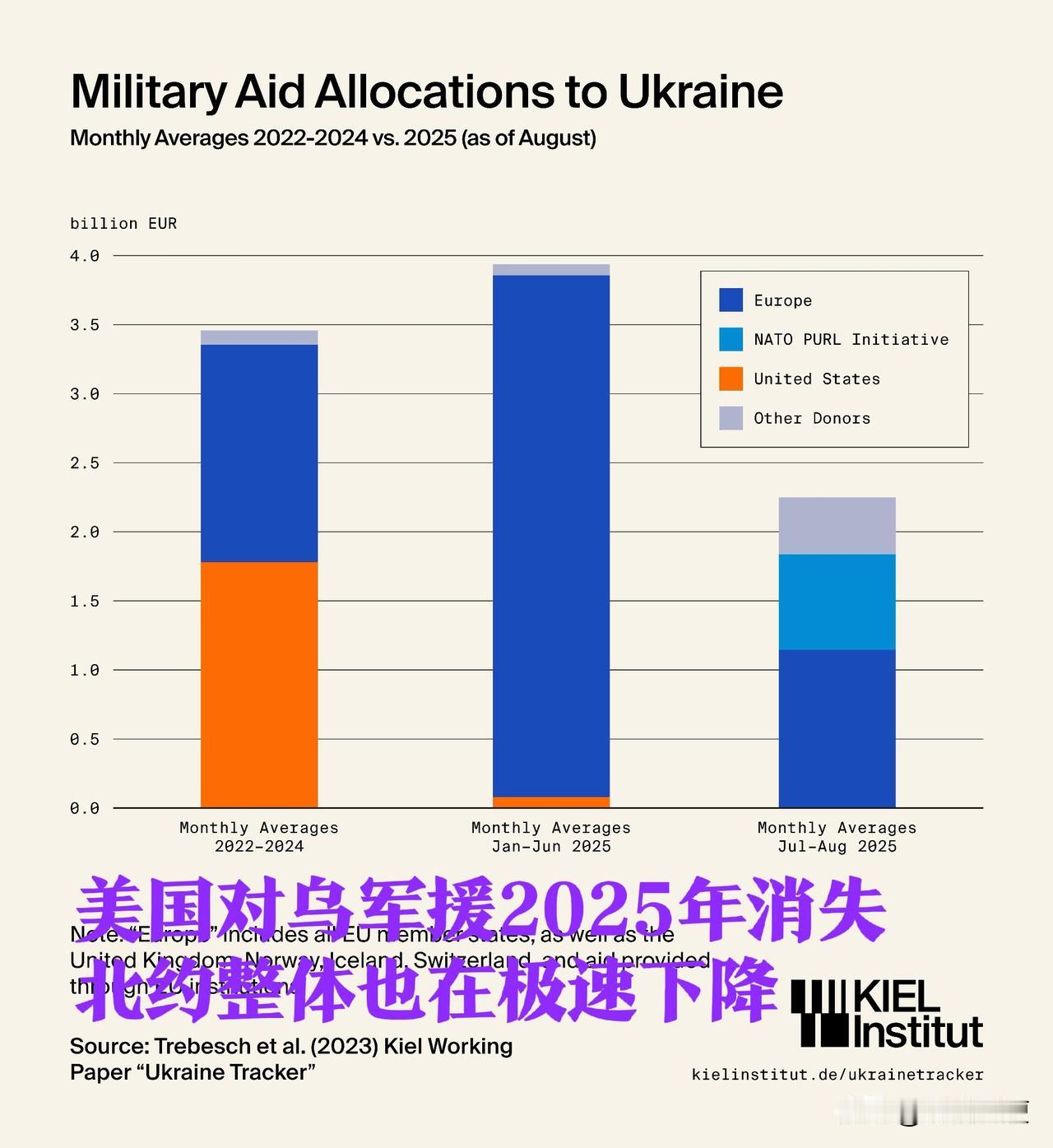 说话不算话啊欧洲人——之前美国停了乌克兰的军援,欧洲人自己说要补上留出来的窟窿。 哦不,他们是说还要加大对乌军援,甚至可能超过美国主导下的对乌克兰援助。 三个月过去了,事实到底如何已经揭晓: 德国【全球经济研究所】报告,尽管欧洲整出了一个《乌克兰优先请求清单》,北约各盟国根据该清单中为乌克兰购买武器,但欧洲: - 7月和8月向乌克兰提供的月均军援与上半年相比断崖式下降43%。 - 1月到6月,总援助额与2022年同比下降高达57%。 欧洲的嘴,就是笑话。