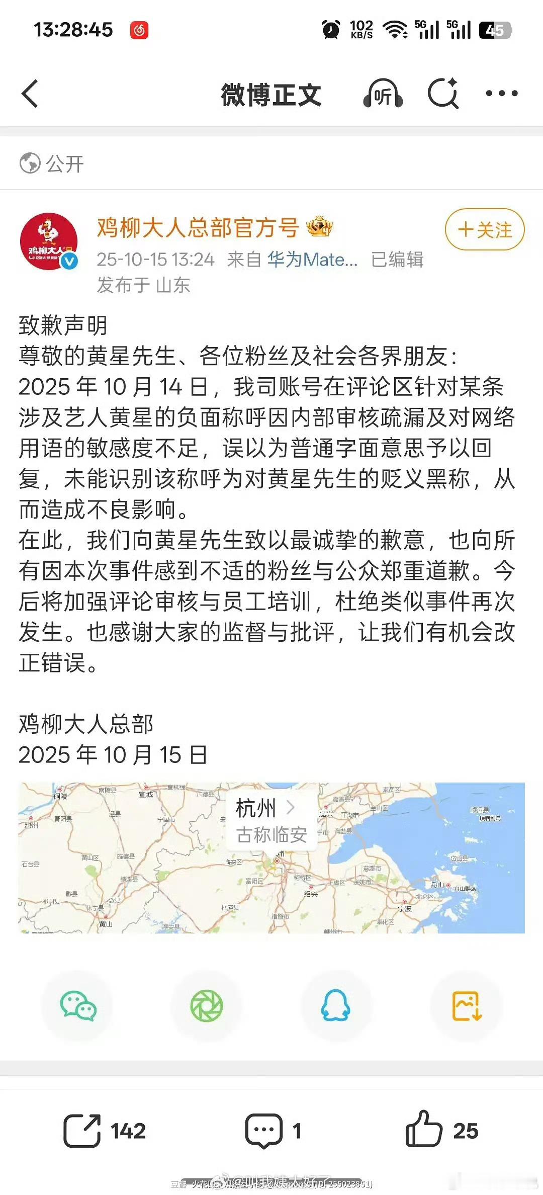 鸡柳大人因为回复了疑似7.0黄星的黑称被粉丝要求道歉。鸡柳大人向黄星道歉[