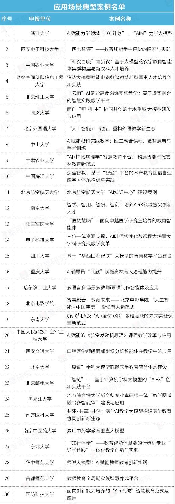教育部公布三批80个典型案例,其中仅有10所高校连续三批均有案例入选,体现出AI