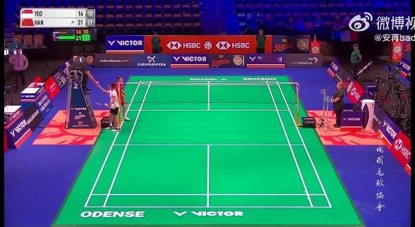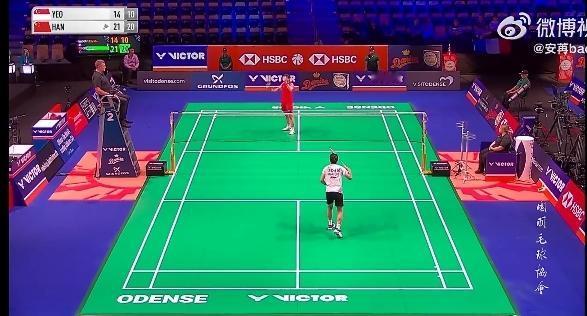 第一局韩悦🇨🇳21-14轻取🇸🇬杨佳敏! 今天韩悦手感不错,不慌张,