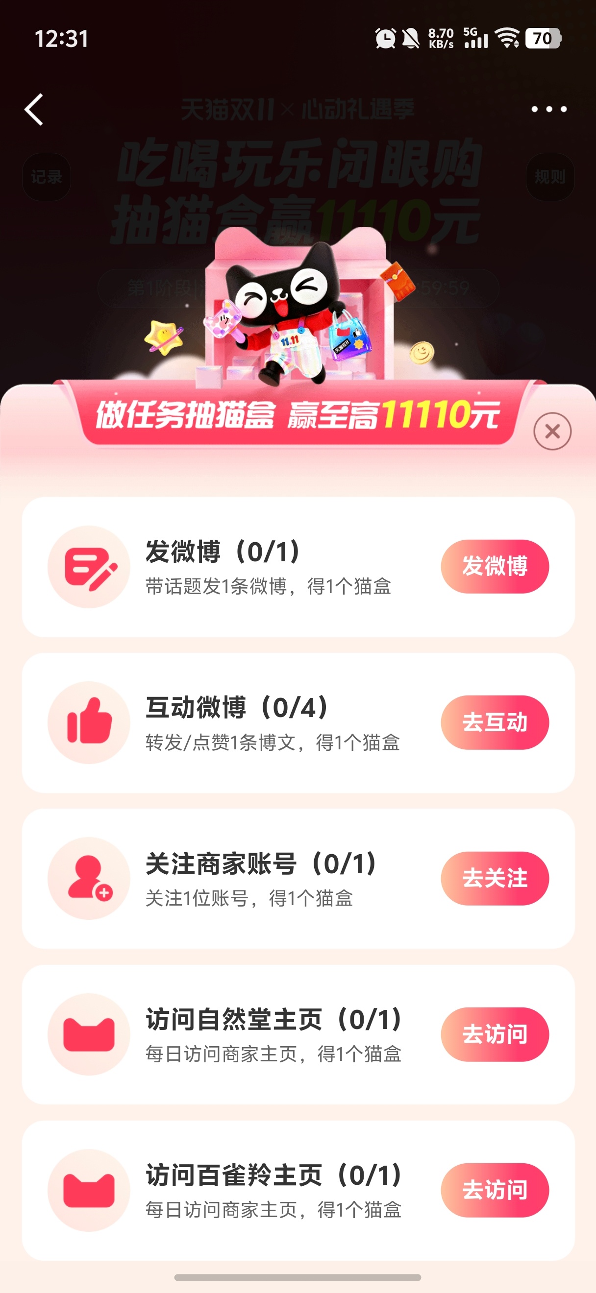抽奖次数不够?去活动页做任务就行,发微博、参与互动、关注商家账号等等,还有明星空降,都能获取更多抽奖,大家都在抽,还不赶快去?[doge]