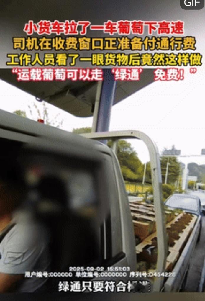这名收费员火了!”浙江杭州,一货车司机拉了一车葡萄下高速,到收费窗口准备付钱时,