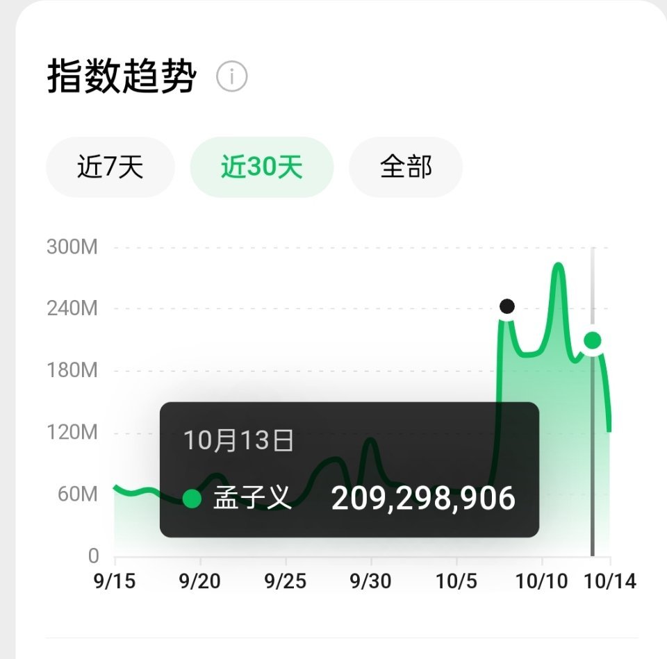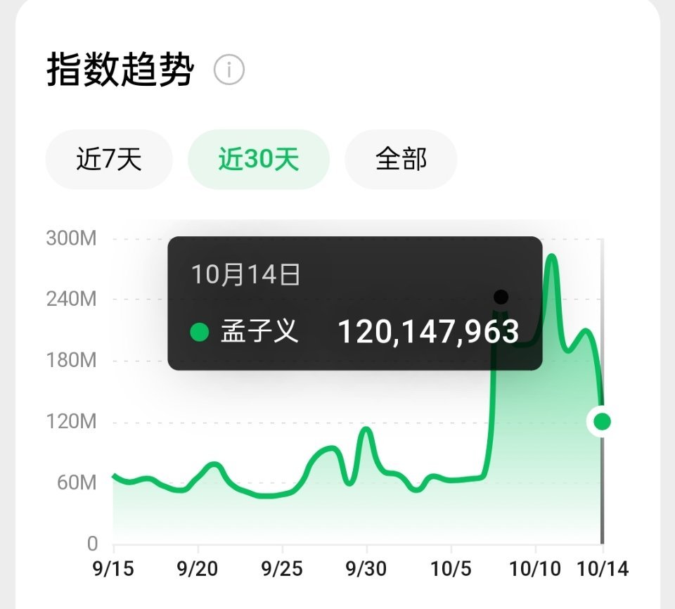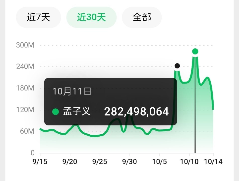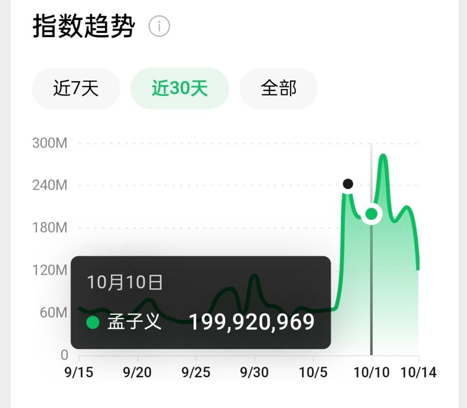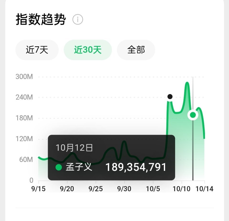 孟子义微指连续一个星期破亿,其中有3天是破2亿的,在这种无剧播的情况下能破亿相当牛了