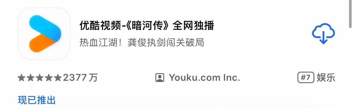 优酷AppStore标题已➕龚俊暗河传,马上要播了~