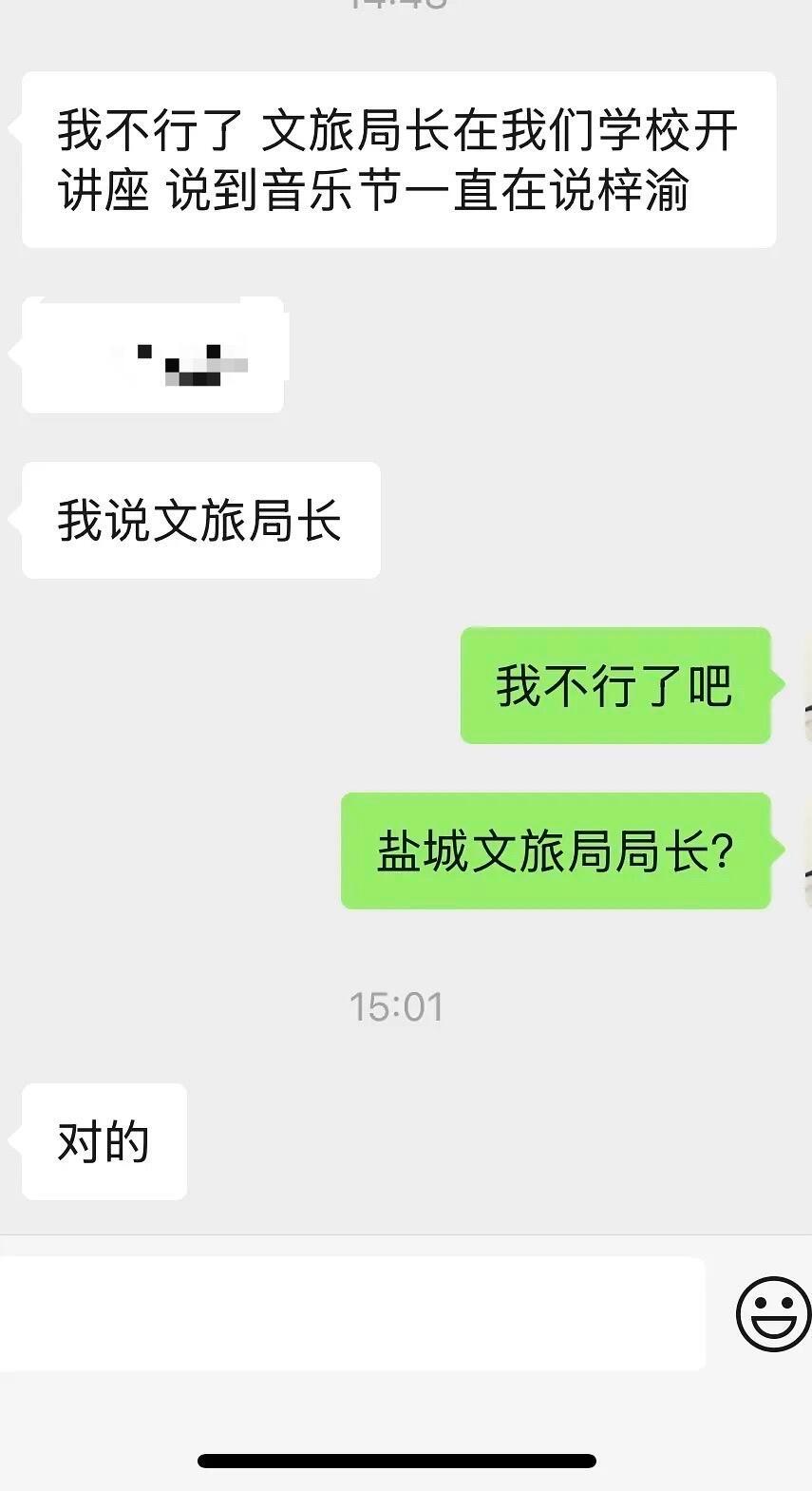 “盐城文旅局局长在我们学校开讲座,说到音乐节一直在说梓渝,就是明星效应”又被肯定了[good]