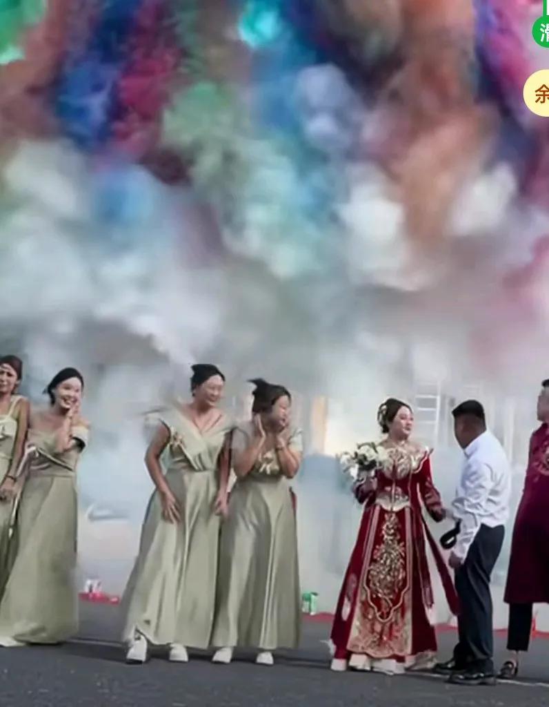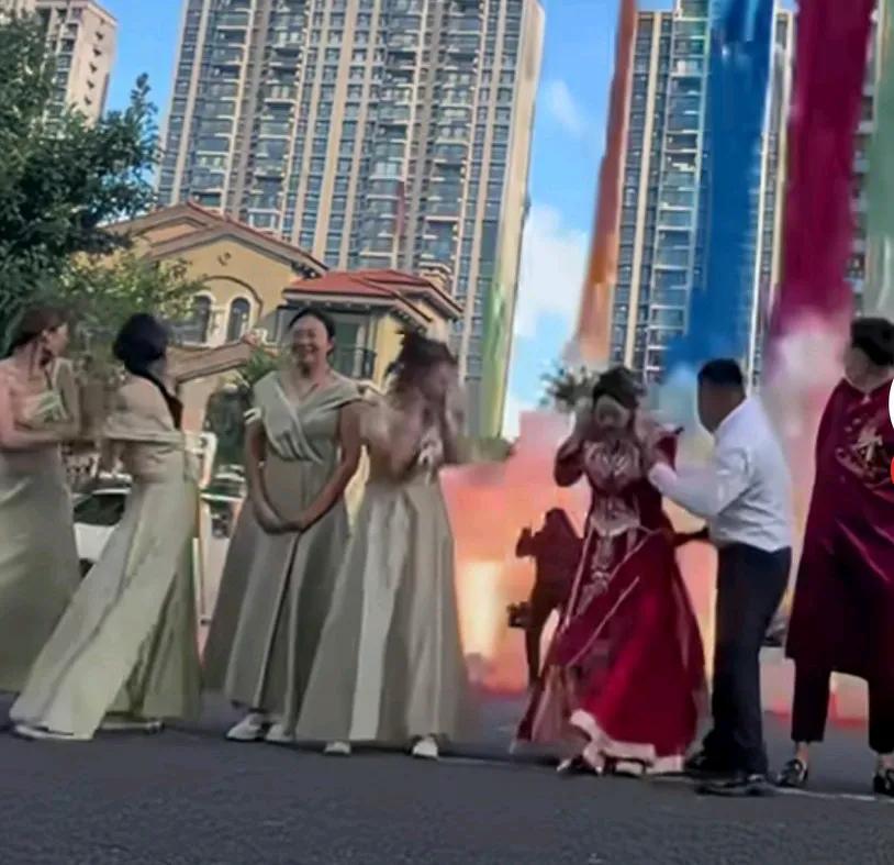 新婚夫妻放烟花拍照遇大妈闯入,摄影师狂喊让开让开,大家都不知道怎么回事儿, 等一扭头的瞬间, 烟花盛开了, 大妈吓得原地不敢动, 这浪漫差点变成事故, 好好的一场策划, 结果有点遗憾, 拍烟花为什么不选没人的地方, 要在小区里呢, 大妈也是凑热闹, 没看到人家前头都是一排穿着婚纱和伴娘服的人吗, 你凑什么热闹。 网友议论纷纷, 有的说新郎新娘嗯这样做是不对的, 公共场所不应该占用, 有的是说老人是故意的, 扰乱人家,明摆着人家结婚放的烟花, 你去跑那凑热闹。