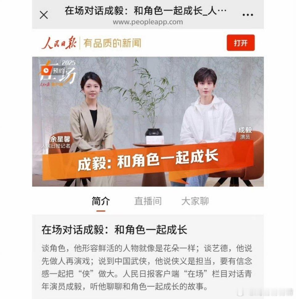 成毅人民日报对话 他说先做人再演戏,希望今天比明天进步一点点,让更多人看到中国武侠,和角色一起成长。