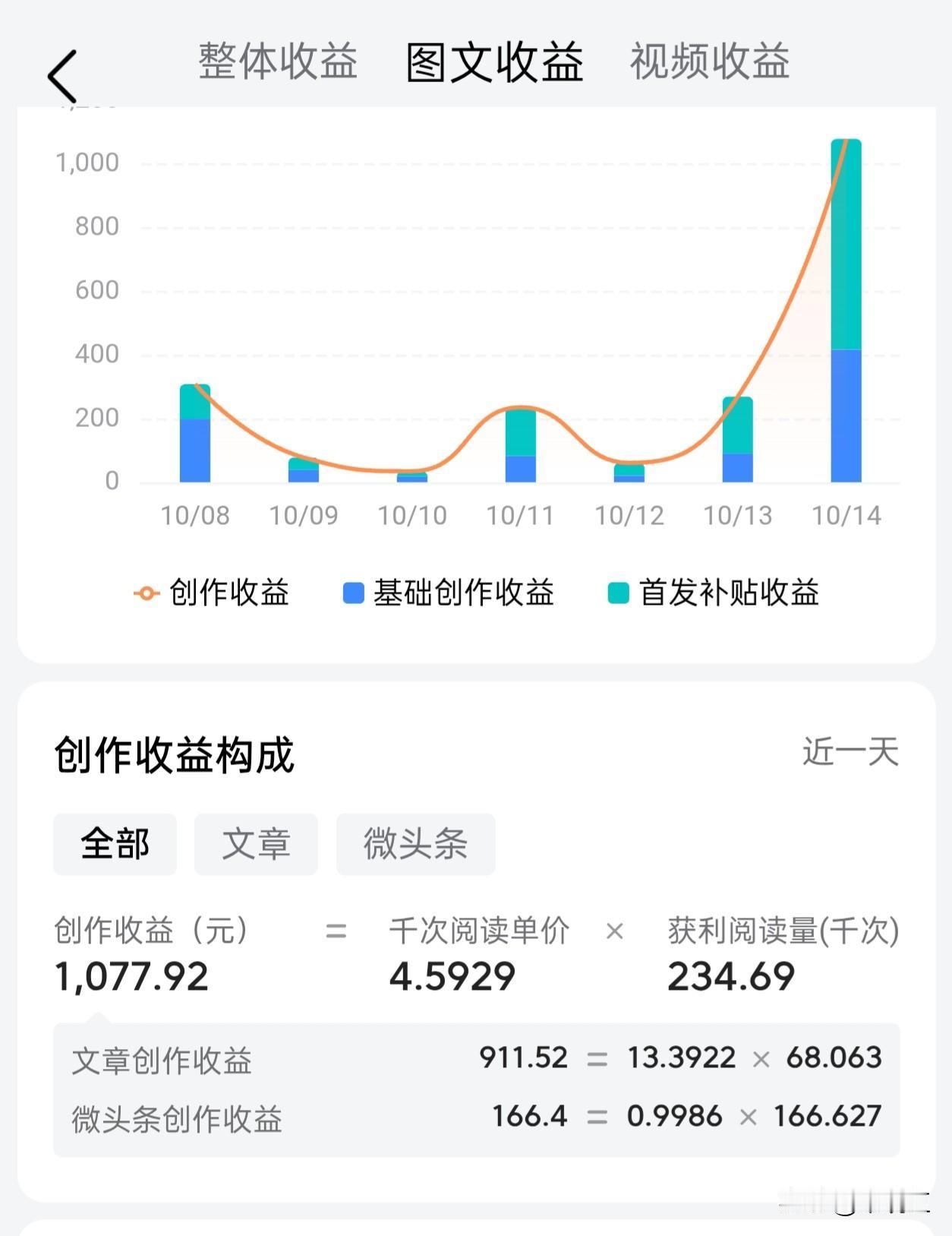 昨天发了写作的感想,很多朋友咨询,怎么写的。 我先说下我是16年底就做这个号了,中间断更了快三年,赶上地产低谷,写很多通过不了,也就不想继续写了。 刚开始运营这个账号,真的是挺难,无意间听课说写微头条有热度,我就写。第一篇爆了就涨了将近两万的粉丝,后来也就慢慢起来了。 在此我也小小的总结下经验。 账号要垂直,情感,美食,娱乐,财经,想好写哪个领域。 如果你只写微头条限制没那么高,但现在微头条的价格没有文章高。第二个就是坚持,多发。很多人确实发了很多收益不大就放弃了。除非你热爱它,才能坚持下来。 我这么说,这里面每天入驻的人多了去了,所以能出来确实难。但我想说,并不晚。 第三个,如果你想流量好就写你擅长的,如果你对新闻敏感就去追热度,比如你刷到好的文章,觉得评论很多,你也去跟发表你的想法。因为这个话题当时的热度高,平台就会给流量,我们属于蹭流量,说不定就蹭到了。 底下图片是昨天的收入,微头条单价低因为是昨天的内容今天爆了,大力出奇迹,多多创作。我仅仅发表自己的看法,我们可以一起探讨