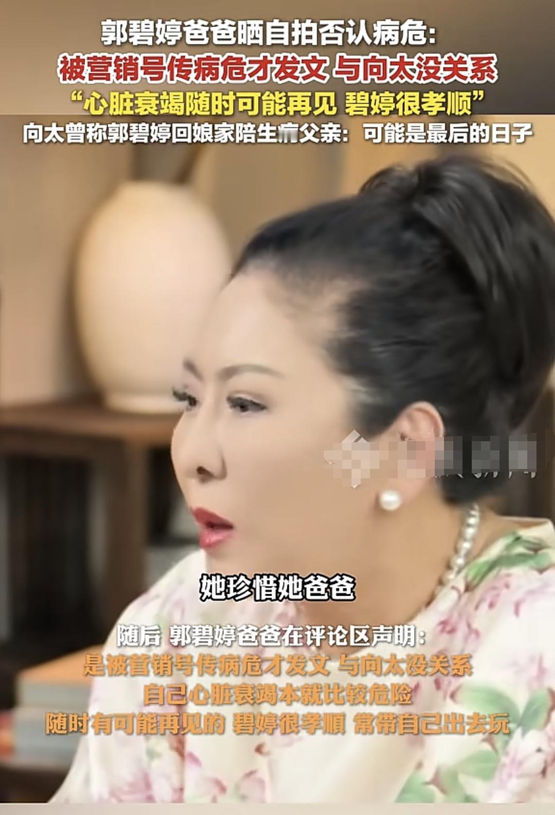 向太这次说的话郭碧婷可不爱听了 “她珍惜她爸爸,可能是最后的日子” 结果郭碧婷爸